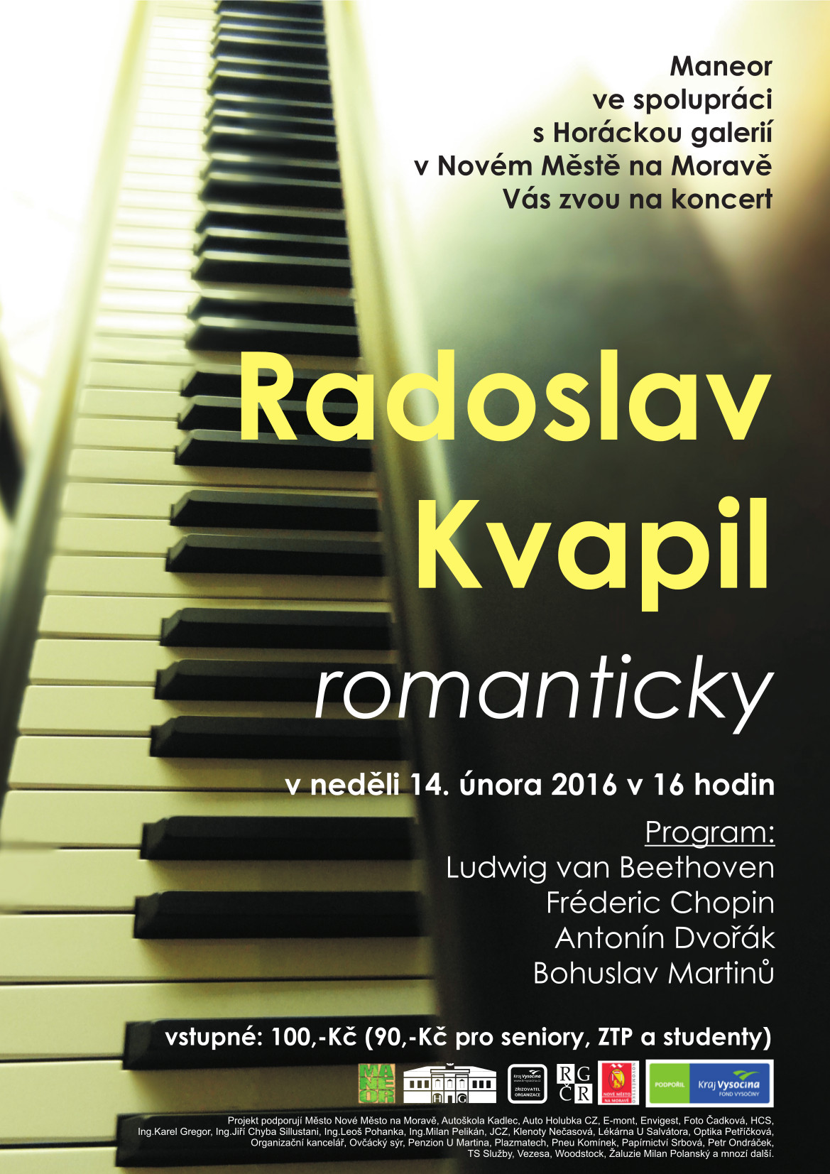 Maneor ve spolupráci s Horáckou galerií vás zvou na koncert českého pianisty a výborného interpreta české klavírní tvorby vůbec. Koncert, který bude laděn romanticky můžete navštívit v zámeckém podkroví na svátek zamilovaných v neděli 14. února 2016 v 16 hodin.