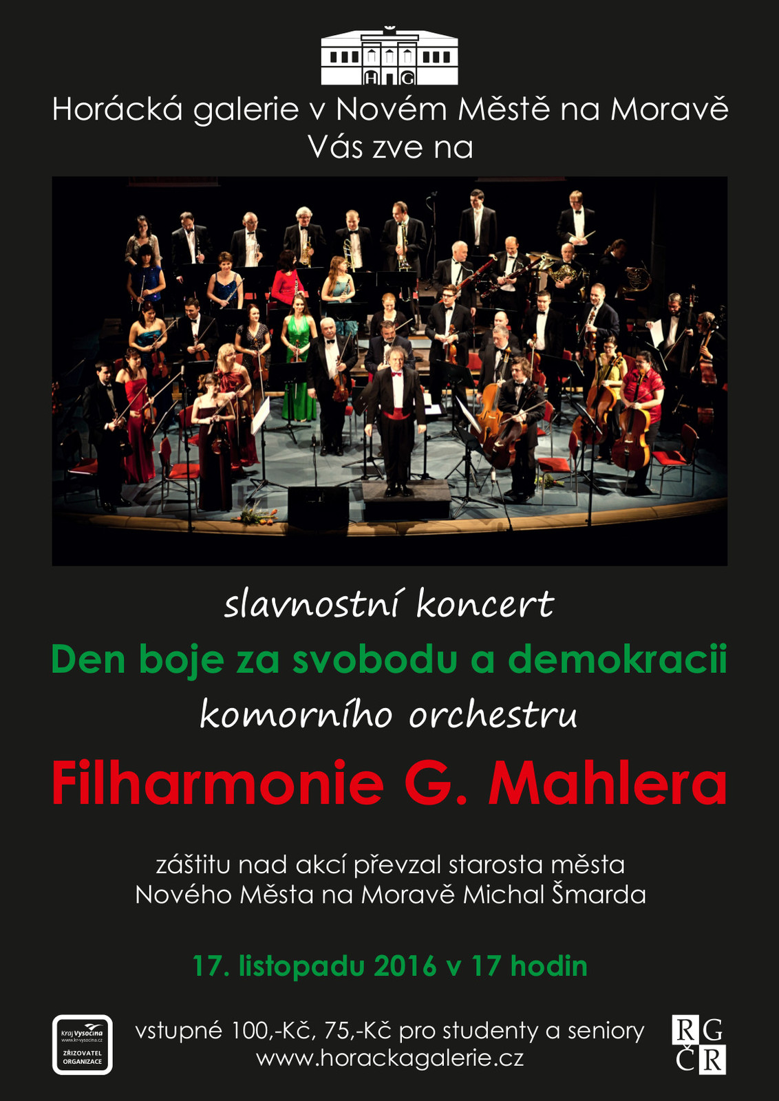 Horácká galerie pro vás připravila ještě jeden malý dárek. Každý návštěvník s platnou vstupenkou na Slavnostní koncert Filharmonie G. Mahlera má 17. listopadu 2016 od 15 hodin možnost prohlédnout si aktuální výstavy i stálou expozici zcela zdarma.