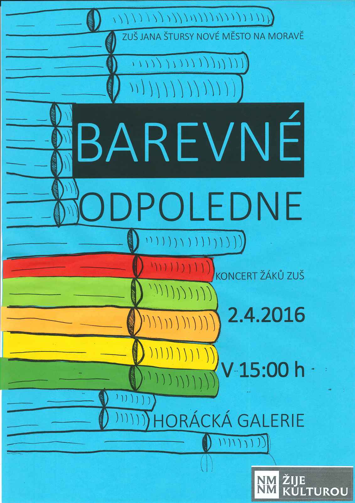 ZUŠ Jana Štursy a Horácká galerie vás zve na pět dubnových koncertů, které startují v podkroví HG již v tuto sobotu 2. dubna v 15 hodin. Během barevného odpoledne se představí žáci varhanické třídy Lukáše Bartoše. Vstupné na všechny koncerty je dobrovolné.