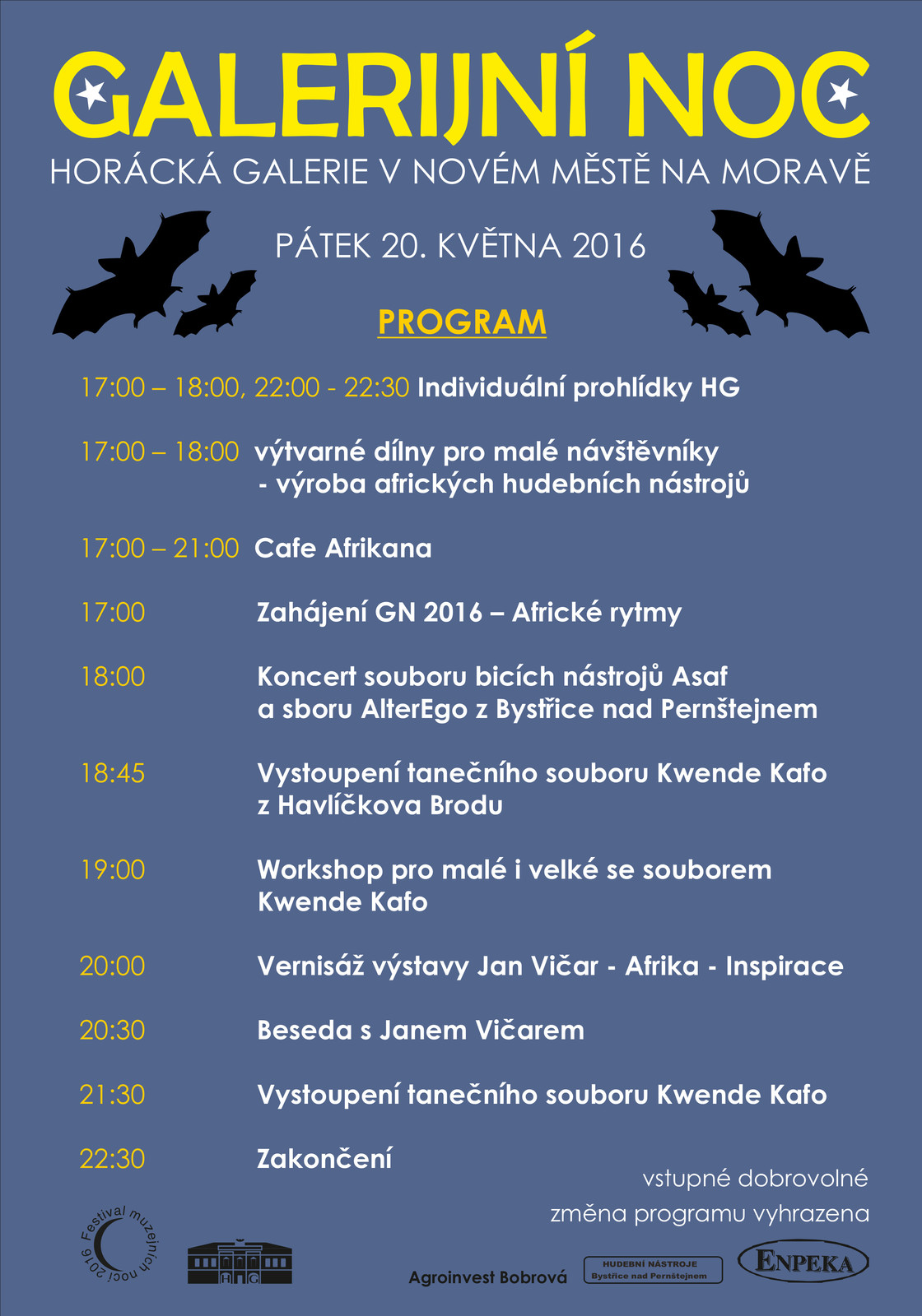 Upozorňujeme návštěvníky, že dvě hodiny před a během koncertů bude omezena prohlídka malovaného humoru Pavla Matušky.