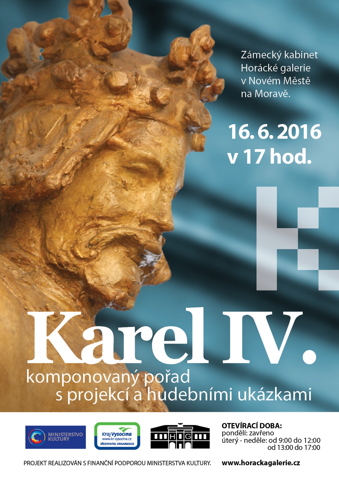 V letošním roce si celorepublikově připomínáme 700. výročí narození Karla IV. a proto vás s radostí zveme na akce, které pořádají organizace zřizované Krajem Vysočina. Jedná se o bohatou nabídku kulturních a vzdělávacích programů pro širokou veřejnost. Horácká galerie se k nim připojuje dvěma výstavami a komponovaným pořadem.