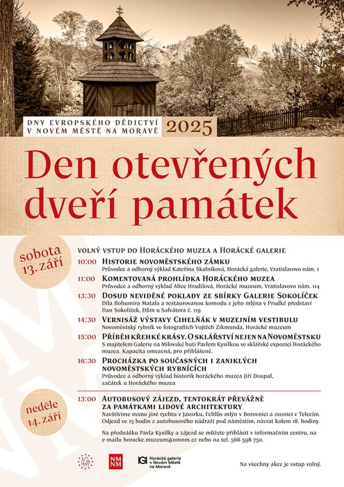 V rámci Dnů evropského dědictví 2025 opět připravujeme společně s Horáckým muzeem zajímavý program. Po celý den můžete navštívit naše galerijní expozice zdarma, od 10 hodin pak zájemce provede Kateřina Skalníková historií novoměstského zámku.