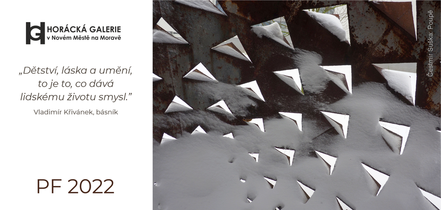 Srdečně vás zveme na lednové akce, jejichž výčet uvádím níže. Mimochodem, v lednu vyvrcholí první ročník Sochy pod novoměstskou oblohou třetí a závěrečnou prezentací sochaře Čestmíra Sušky. Fotoaparátem zachycené detaily jeho objektů, které jsou do března k vidění v ulicích Nového Města, jsme použili i pro naše letošní novoročenky. Ke zmíněnému úvodnímu citátu bych chtěla přidat ještě jedno osobní přání – aby vzájemné pochopení, respekt a úcta nevymizely z našich životů. Když jsem koncem minulého roku přála vše nejlepší zaměstnancům Horácké galerie, říkala jsem jim: „Doba je neklidná, buďme na sebe hodní.“ A to přeji i Vám všem, kteří jste tyto řádky dočetli až do konce. Šťastný nový rok 2022, přátelé!“