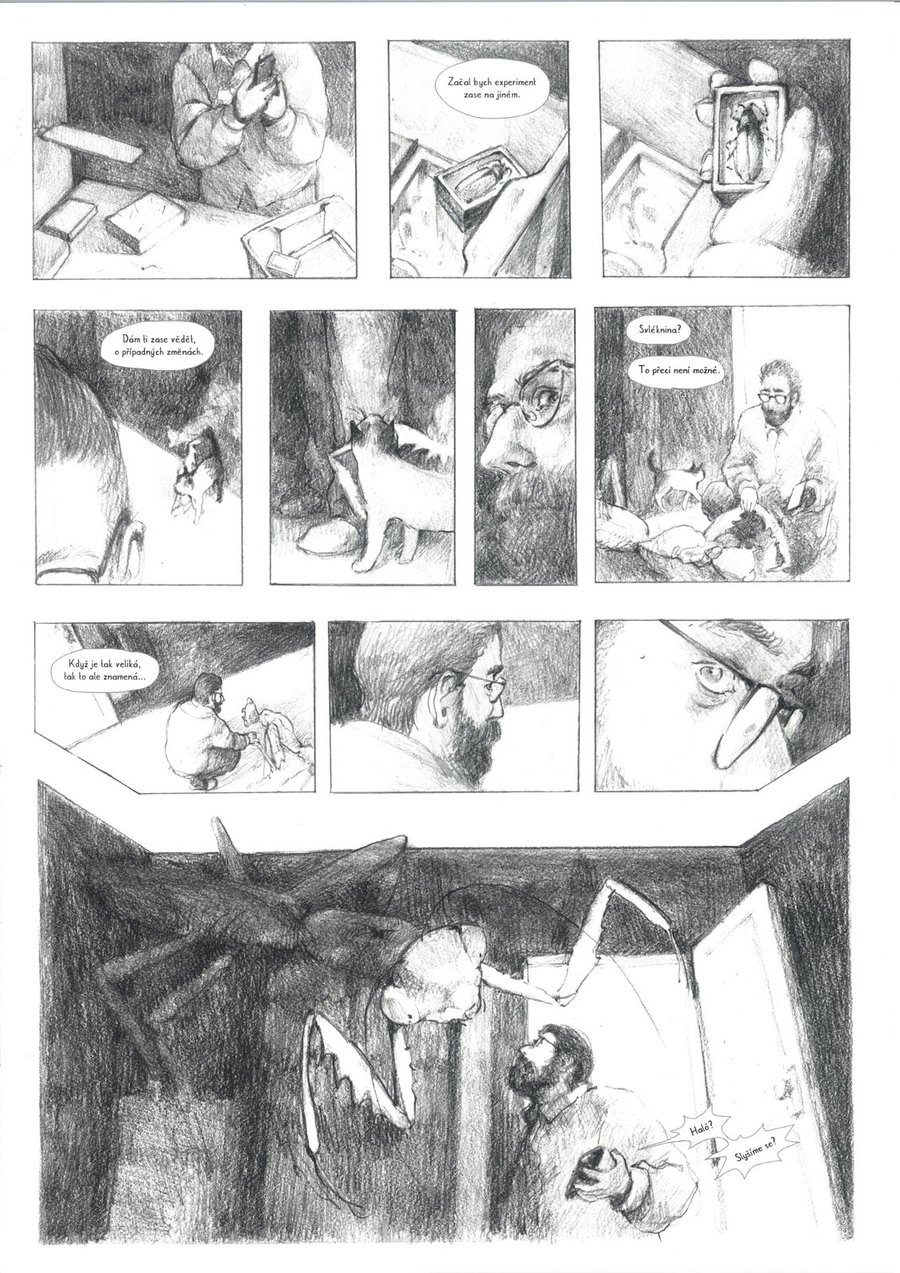 Příběh vypráví o sběrateli brouků, kterému se poněkud vymkne z rukou pokus s chemikálií, jež by měla ulovený hmyz dokonale zakonzervovat. Komiks se ze všech ostatních soutěžních prací výrazně vyděloval díky jemné, a přitom zcela suverénní tužkokresbě. Autorka přesvědčivě zvládá lidskou anatomii, zachycení emocí svých hrdinů a především práci se světlem – šerosvitná atmosféra výborně slouží hororové pointě příběhu.