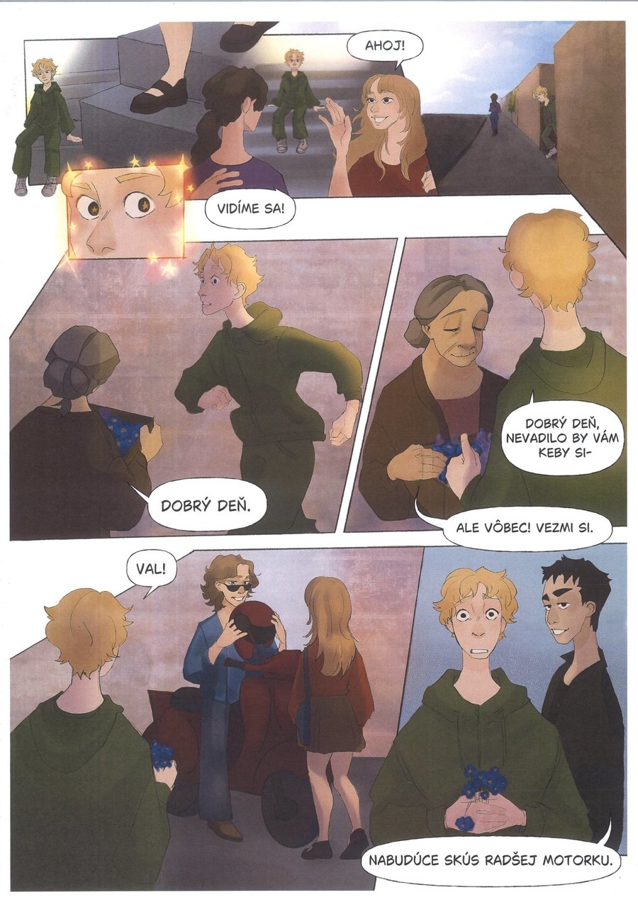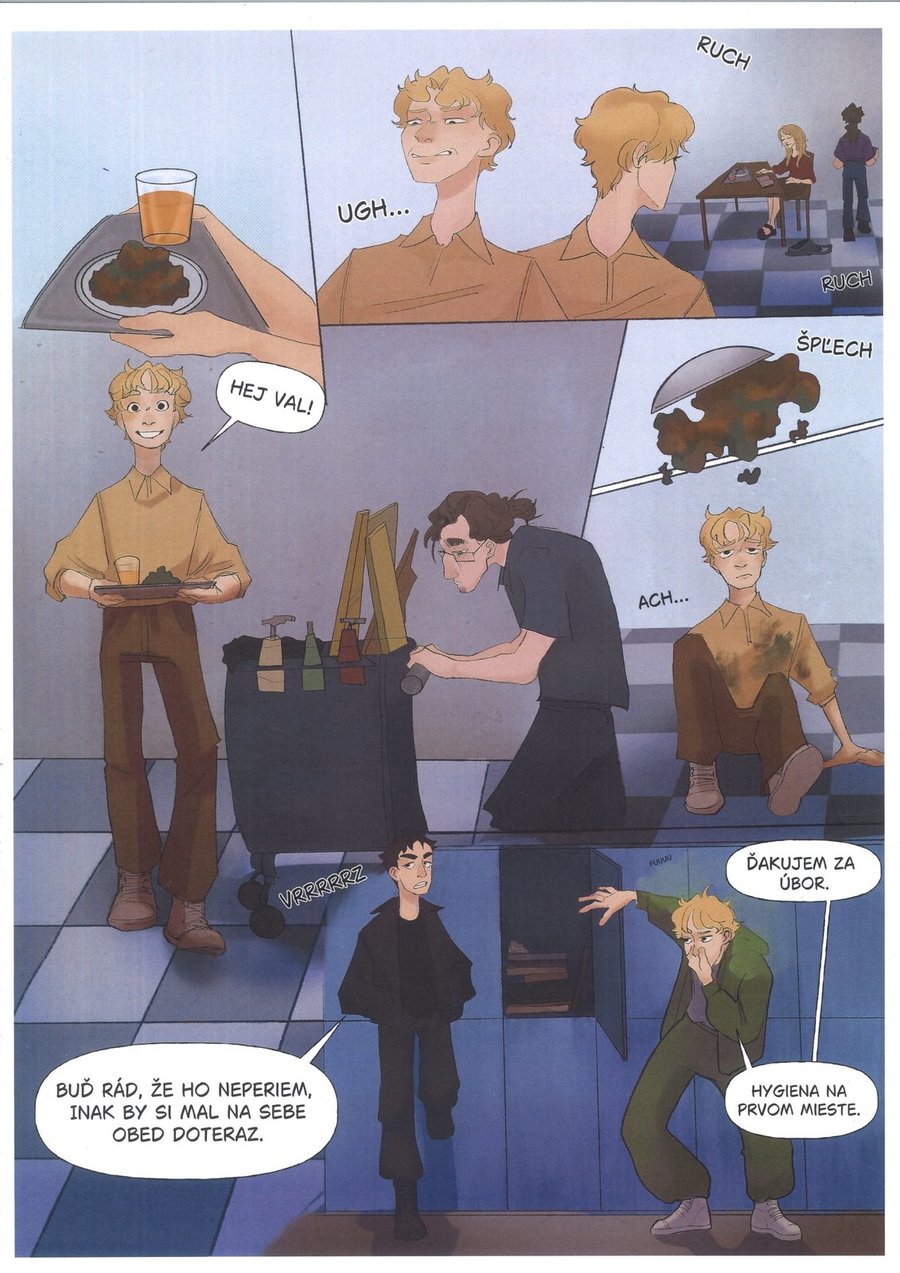 Komiks představuje příběh dospívajícího chlapce, který se snaží pozvat dívku svých snů na stužkovací večírek. Téma je zpracováno s citem pro atmosféru a dobře vystihuje nervozitu, kterou může mladý člověk v takové situaci prožívat. Po výtvarné stránce je komiks velmi zdařilý, styl kresby konzistentní, postavy rozpoznatelné a jejich mimika vystihuje emoce. Barevná paleta je zvolena citlivě a podporuje náladu jednotlivých scén. Menší nedostatky lze nalézt ve vyprávění. Místy je děj méně srozumitelný, některé přechody mezi scénami působí nejasně a čtenář může mít potíže ve sledování postav nebo časovou posloupnost. Jinak se ale jedná o povedené dílo s výtvarným potenciálem a silným emocionálním nábojem.