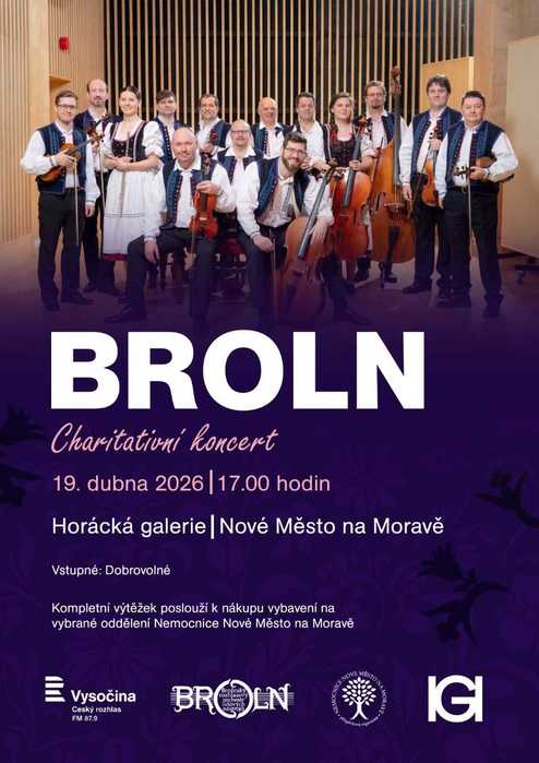Nemocnice Nové Město na Moravě společně s Českým rozhlasem Vysočina a Horáckou galerií pořádá 19. dubna 2026 od 17 hodin Charitativní koncert s Brněnským rozhlasovým orchestrem lidových nástrojů (BROLN). Koncert plný folkloru rozezní prostory koncertní síně v Horácké galerii v Novém Městě na Moravě. Přijďte se zaposlouchat do tklivých i jásavých tónů houslí, cimbálu, klarinetu, flétny, violy a dalších hudebních nástrojů. Přijďte si vychutnat chvíle plné pohody do Horácké galerie v Novém Městě na Moravě.