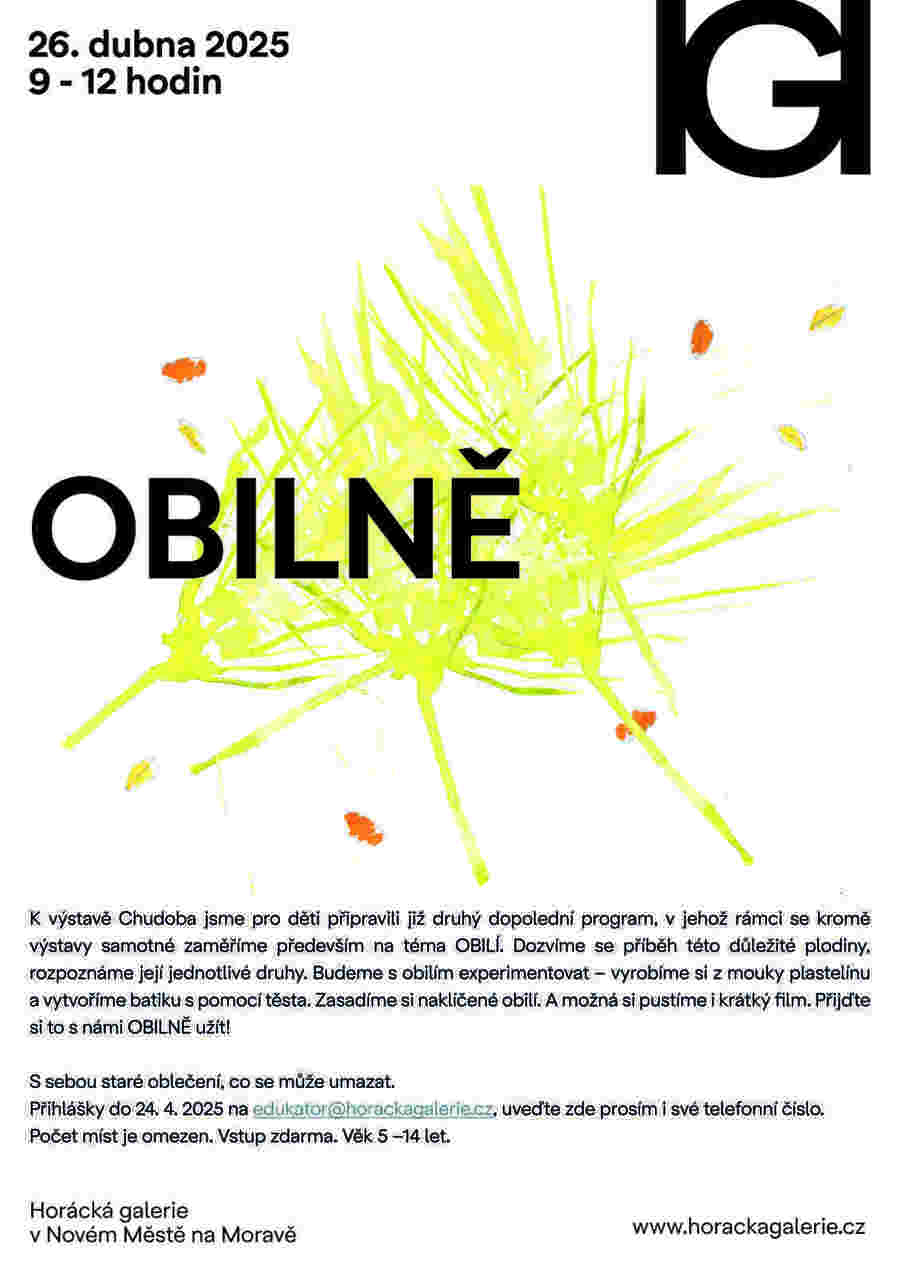 Přihlášky do 24. 4. 2025 na edukator@horackagalerie.cz, uveďte zde prosím i své telefonní číslo.