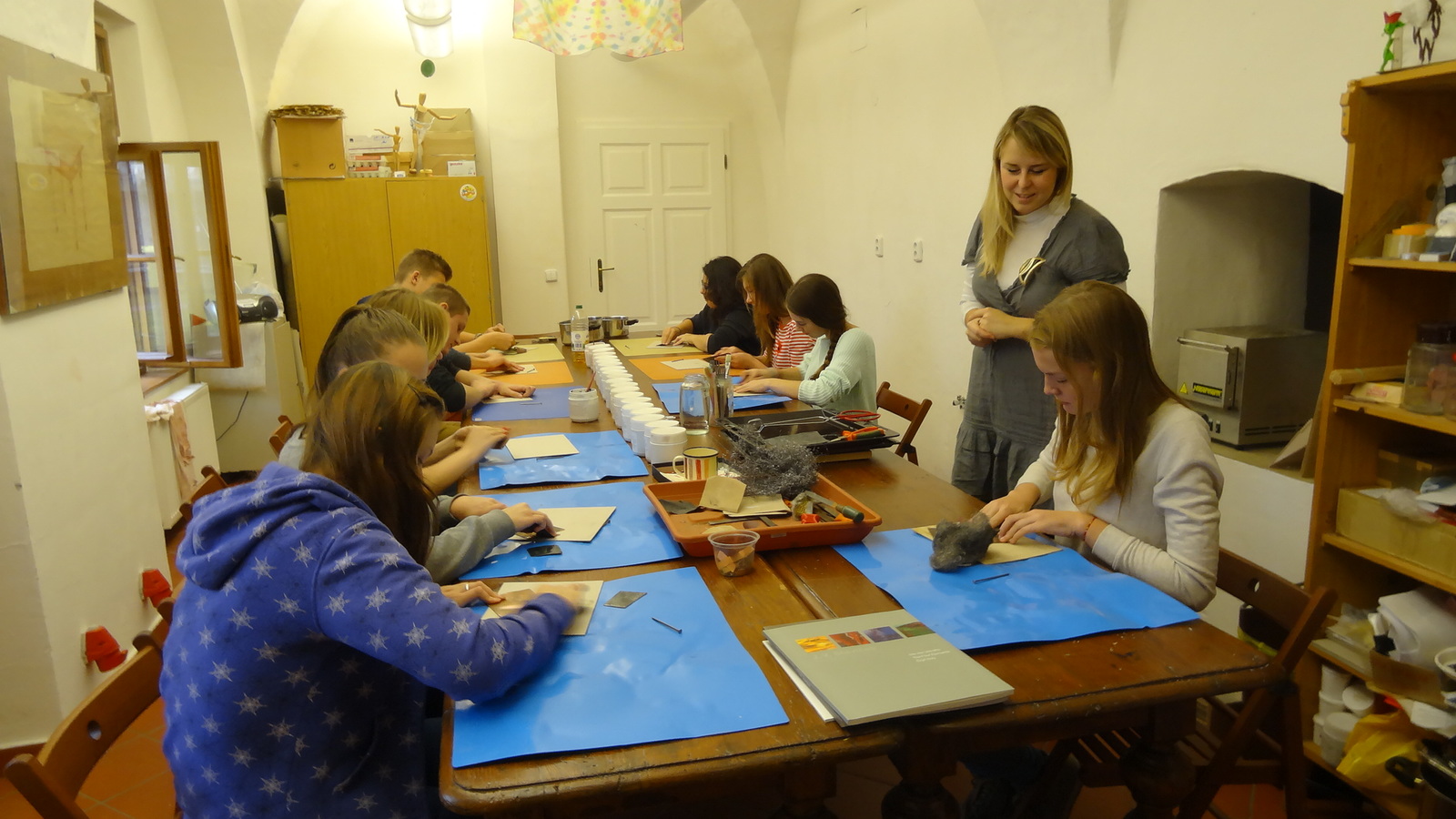My máme zažité, že k těmto věcem inklinují více děvčata, ale mne často překvapili spíše kluci. Edukační práce je hodně o tvoření, máme tady dílny, ať už je to keramika nebo grafická dílna. A právě taková ta mužská rozvážnost v tomhle směru občas přinášela větší ovoce. Studentů - kluků nebo i dospělých mužů, co navštívili dílnu, nebylo mnoho, ale vždy mne úplně nadchlo, jak se k tomu postavili nebo co svým přístupem dokázali vytvořit. Ale abych nekřivdila ženám. V loňském roce jsem tady měla návštěvníci, která se rozhodla, že postaví betlém technikou Tiffany vitráže. Když jsme to konzultovaly, tak jsem nevěřila, že se to úplně podaří, aby to bylo trojrozměrné. Ale po sedmi návštěvách se povedlo a měly jsme z toho obě obrovskou radost. Již jsem nebyla v pozici lektora, ale spíš kouče, který koordinoval, aby to dopadlo jak má, což mě hodně bavilo a byl to potom velký pocit naplnění, když vzniklo finální dílo.