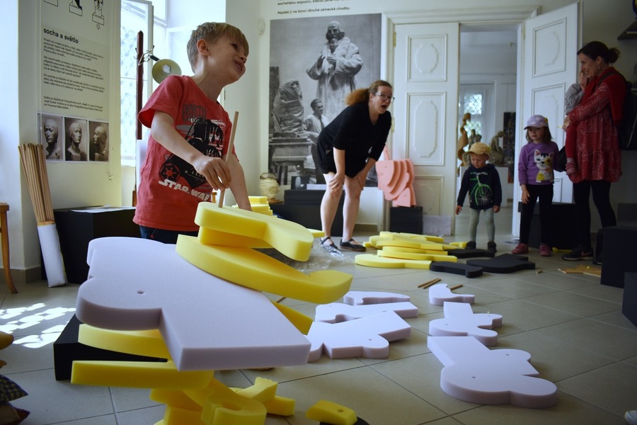 Vincenc Makovský by se divil. Některé jeho sochy převedla sochařka a lektorka Andrea Kaňkovská do stylizovaného 3d modelu a následně nechala vyřezat do barevných pur pěn. Vznikly tak několikadílné sochy, z jejichž částí se pomocí dřevěných tyček dají skládat nejrůznější tvary a sestavy. Na naší dílně toho využily nejmenší děti a dost si vyhrály. Svoje sochy umísťovaly přímo do expozice a dávaly jim názvy. Samozřejmě se také pokusily sestavit původní Makovského sochy. Některé z nich viděly v originále v naší nové stálé expozici věnované Vincenci Makovskému.