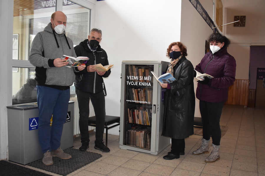 Dne16. dubna 2021 jsme na novoměstském autobusovém nádraží nainstalovali knihobudku. S tímto nápadem přišla naše knihovnice Jana Válková, která v galerijní knihovně pečuje především o tituly související s uměním. Při velkém úklidu totiž objevila i beletristické knihy vydané v první polovině 20. století a nechtěla je vyhodit. Zaměstnanci galerie jí pak pomohli nápad zrealizovat. Děkujeme dopravní společnosti ZDAR, a.s. za spolupráci a Ing. Lukáši Německému, manažerovi provozu osobní doprava, že s námi provoz knihobudky dopoledne odstartoval.